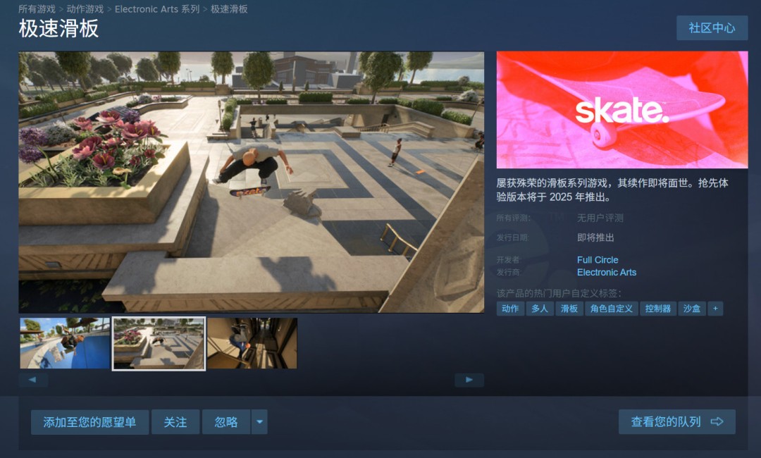 EA和开发商Full Circle宣布免费滑板游戏《极速滑板(skate.)》将于9月16日以抢先体验形式推出,登陆PC(Steam\Epic\EA App),PS5,PS4,Xbox Series和Xbox One平台。抢先体验一年后才会推出正式版。