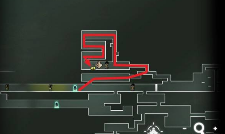 传送至石碑【西实验室】,沿红色箭头前往紫色房间。