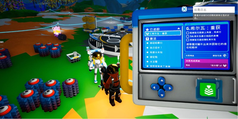 以西尔维任务为例,玩家需要先找到5个G.希尔瓦壳,然后对着它们长按F键进行扫描。接着在微型花园中放入一罐土、锌和跳藤种子。在希尔瓦星球完成蜗牛收集任务时,玩家需要将从微型花园任务中获得的小型喇叭放置在花园上方。随后站在蜗牛面前,连续跳两次舞蹈,调整视角对准微型花园,长按F键,即可将蜗牛吸入到微型花园中,完成该阶段的收集目标。