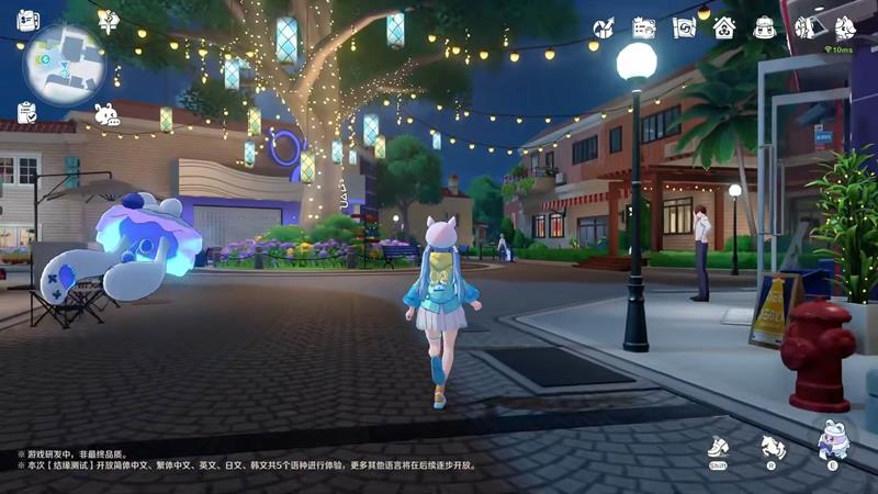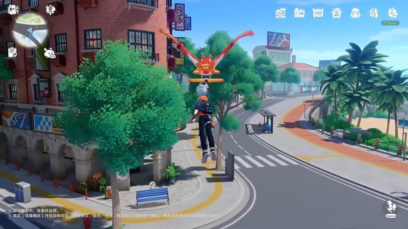 首先是这片滨海城镇的游戏世界,在这世界里有各种各样的可爱精灵,玩家可以在这片世界自由探索,交互,骑着精灵飞行等等。不得不说从视频中展示的街道,开阔广场和学院风格的建筑来看,米哈游在开放大世界搭建是非常成熟的。