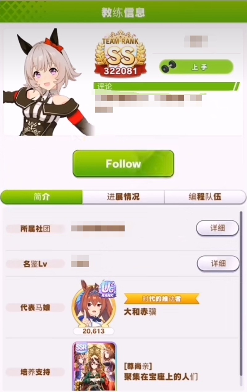 闪耀优俊少女的广场功能也是添加好友的重要途径。在广场界面可以浏览其他训练员的优俊少女,点击任意马娘头像就能查看详细资料,资料页面设有添加好友按钮,可以直接向该训练员发出好友邀请。