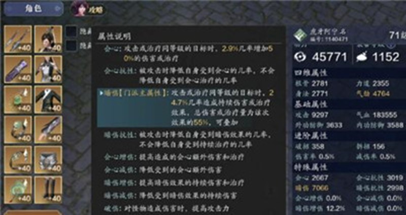气劲属性每点可以增加0.5暗伤和0.8攻击力,而暗伤属性主要影响持续伤害效果。在洗炼过程中,可以通过特定操作实现双属性叠加。