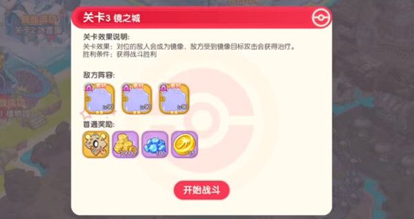 这关要找到真实胡地,如果打到假的会全体回血,所以不建议使用造成全体或者多单位伤害的精灵,(另外沙奈朵的迷惑会导致对面互攻,也会导致对面回血,所以不太建议使用)这里建议用这三只就可以