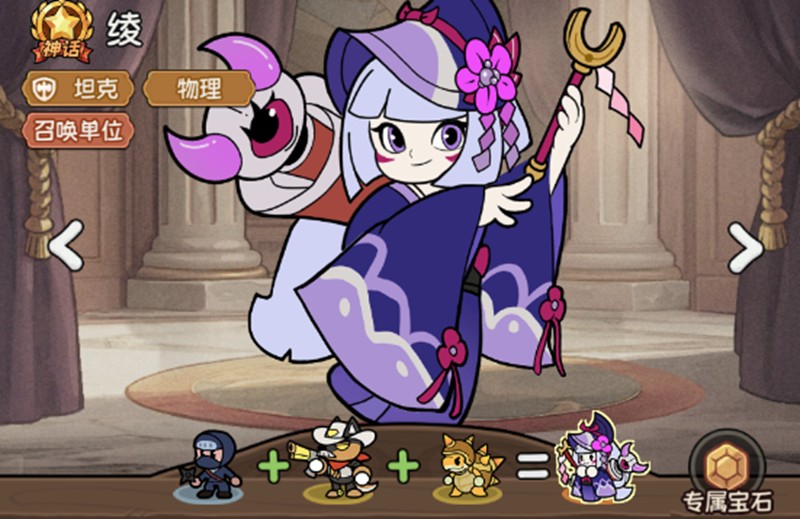 绫是一位能够召唤单位的物理坦克,合成路线为黑影+机甲汪+芒刺。黑影作为精英射手英雄容易获取,适合用来组建前期阵容。芒刺拥有控制技能和AOE伤害,建议优先召唤。机甲汪则更适合作为过渡单位使用。绫需要配备1个传说宝石和2个神话宝石,传说宝石能为队友提供攻击力和生命值加成,神话宝石则能提升免伤和攻速。由于绫能召唤大量尸鬼单位,攻速加成的收益会非常可观。