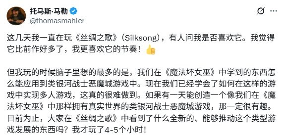 近日,《空洞骑士:丝之歌》发售,引起游戏界渲染大波,许多独立游戏甚至选择主动跳票避其锋芒。不过,也吸引了许多玩家游玩这款游戏,曾制作出同样类银河恶魔城的《奥日》两部曲——《精灵与黑暗森林》以及《精灵与萤火意志》的月亮工作室CEOThomas Mahler也不例外,同时分享了自己的想法。