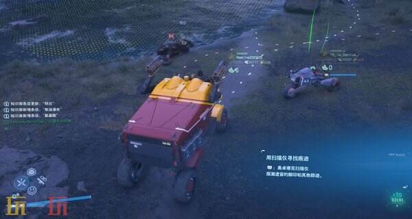 使用扫描功能,确认地上的属于明日的紫色脚印,跟随脚印走。