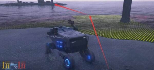 扫描焦油海面,沿着黄色的隐藏路线驾驶,避免进入红色区域,就能直达小岛。