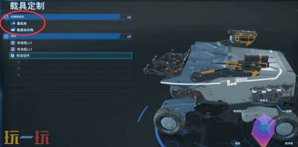 在车库中,将黏着加农炮和重机枪安装到越野皮卡上。