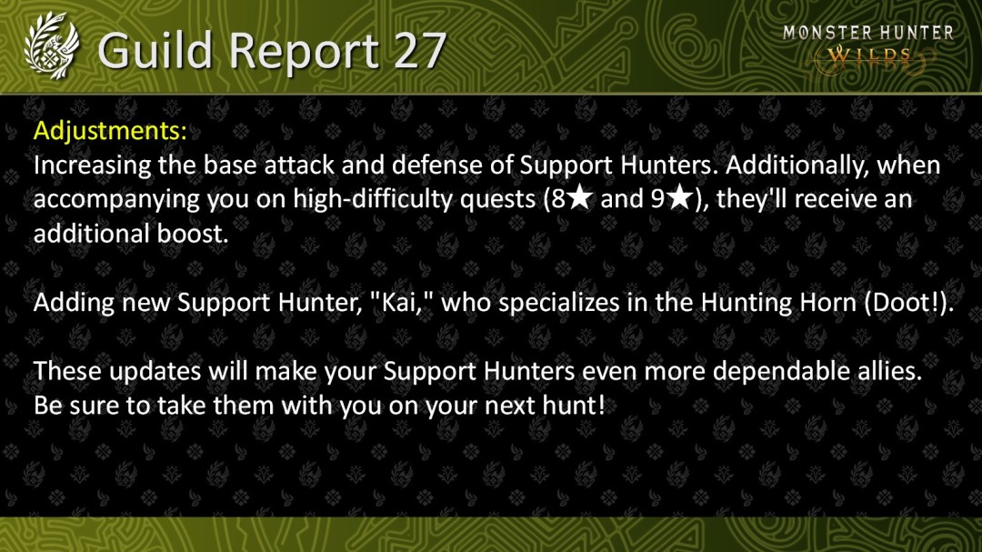 这些更新将使随从猎人成为您更可靠的得力帮手。下次狩猎时务必带上他们同行!