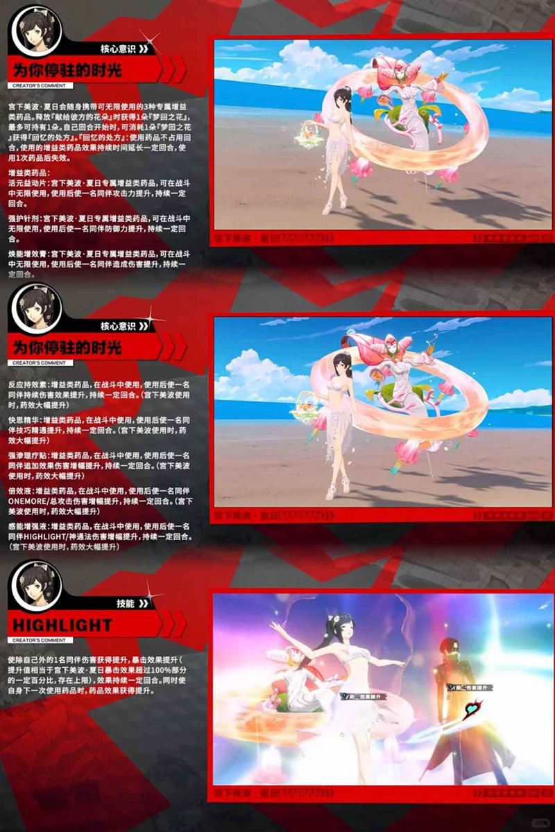 2、释放三技能时叠一层梦回之花(上限1层),回合开始时消耗梦回之花,使用药品不占回合,强化药品