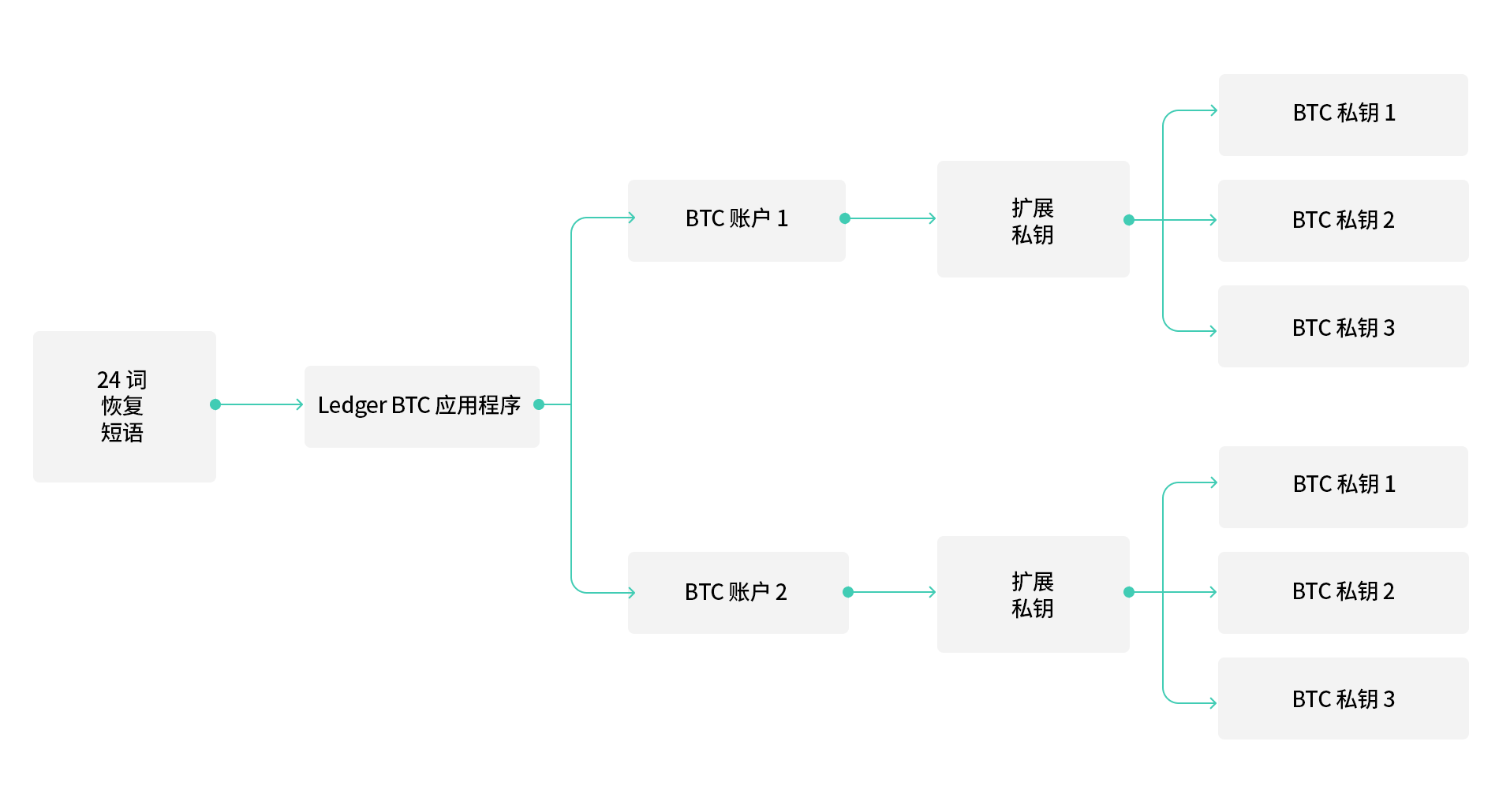 对于不使用 HD 的加密资产,私钥生成过程如下所示: