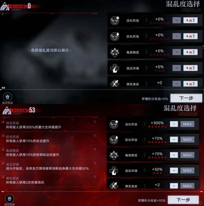 “开始探索”进入肉鸽→选择混乱度(没通过月相九没混乱度,不是打梦魇挑战没必要提高混沌度)→选择队伍→你选系统推荐的→开始探索→顺从→主题→确认→特异点(剧情)(需先过完剧情,才能开放“无尽梦魇(纯肉鸽)”玩法)→一直到“月相九”首领战结束“记录”队伍(用来打梦魇挑战)/“直接结算”分数