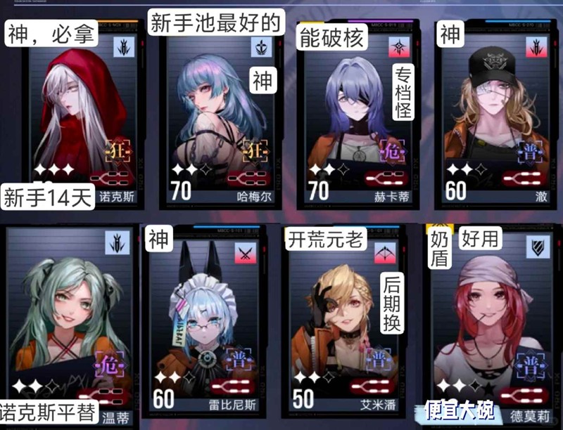 新手期最好的配队,如果你有上位同职业可替换。如果队伍前期和我的一模一样不要问直接按图上练