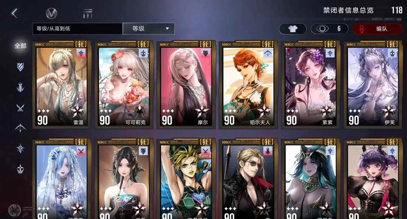 基本配置需要奶+输出+抗伤+破核,其中输出也可以充当前期抗伤位(9章前)