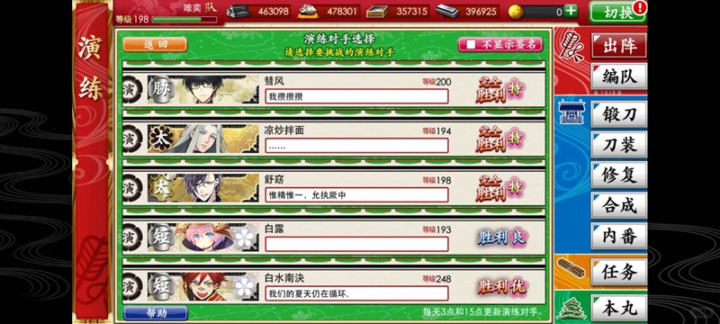 ▪刀剑习合:特定乱舞等级会加数值或给糖(习合对象是同把刀,△合成优先,稀有刀难获得故先习合)