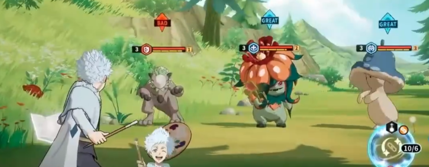 他的“素描”会喷洒出各种颜色的颜料,对1名敌人造成输出,自身SP在4个以上的时候,能额外获得魔力增加的增益后再展开攻击,他的“涂色”会发射各种颜料,对所有敌人造成伤害,并额外赋予敌人们防御力减少的减益效果1回合。
