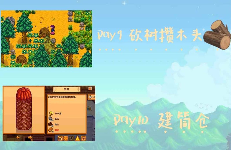 Day9 砍树多攒木头,树种子种下,夏季有绿雨会快速催熟方便我们获得更多木头。