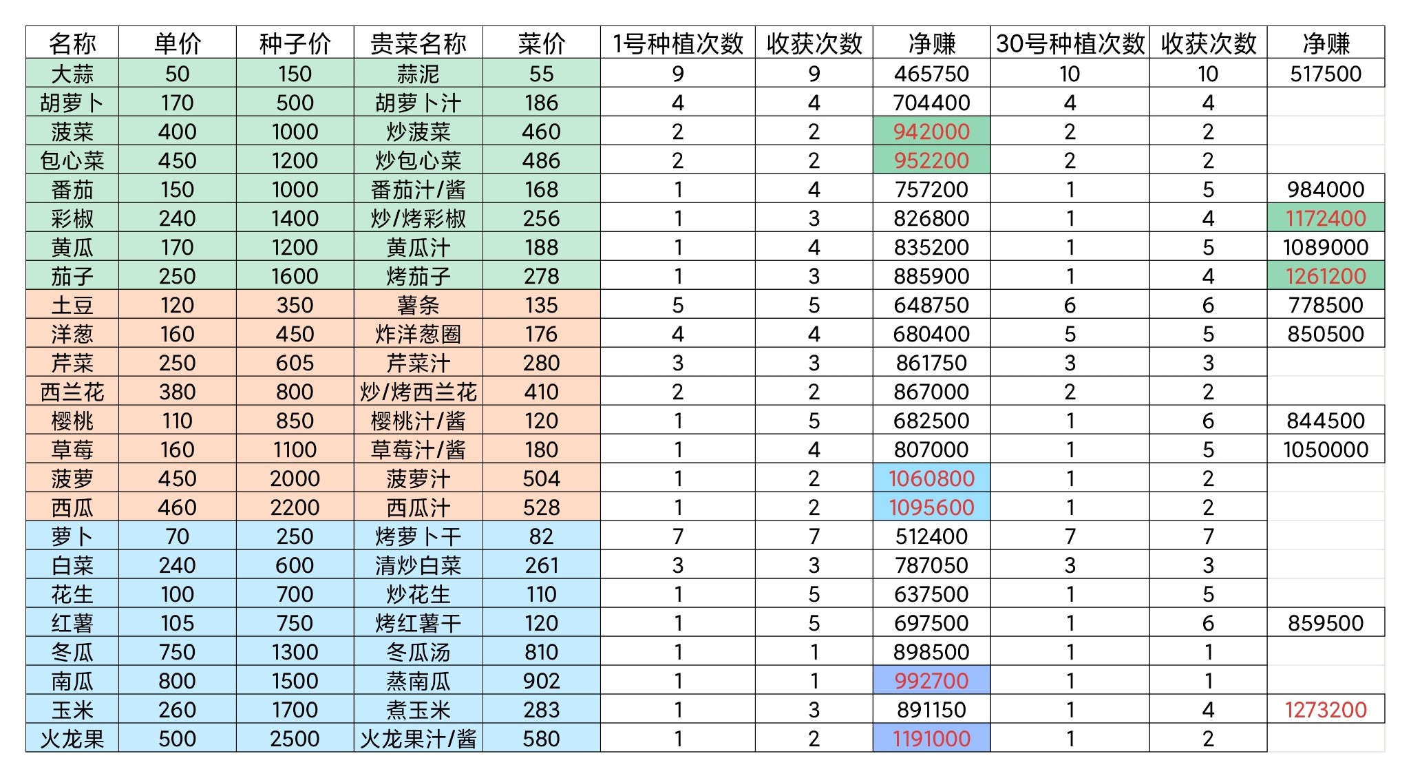 号令cc的小编为您带来的牧场气息单个作物做菜最赚钱菜谱,希望能帮助到大家,更多相关的文章请关注号令cc。