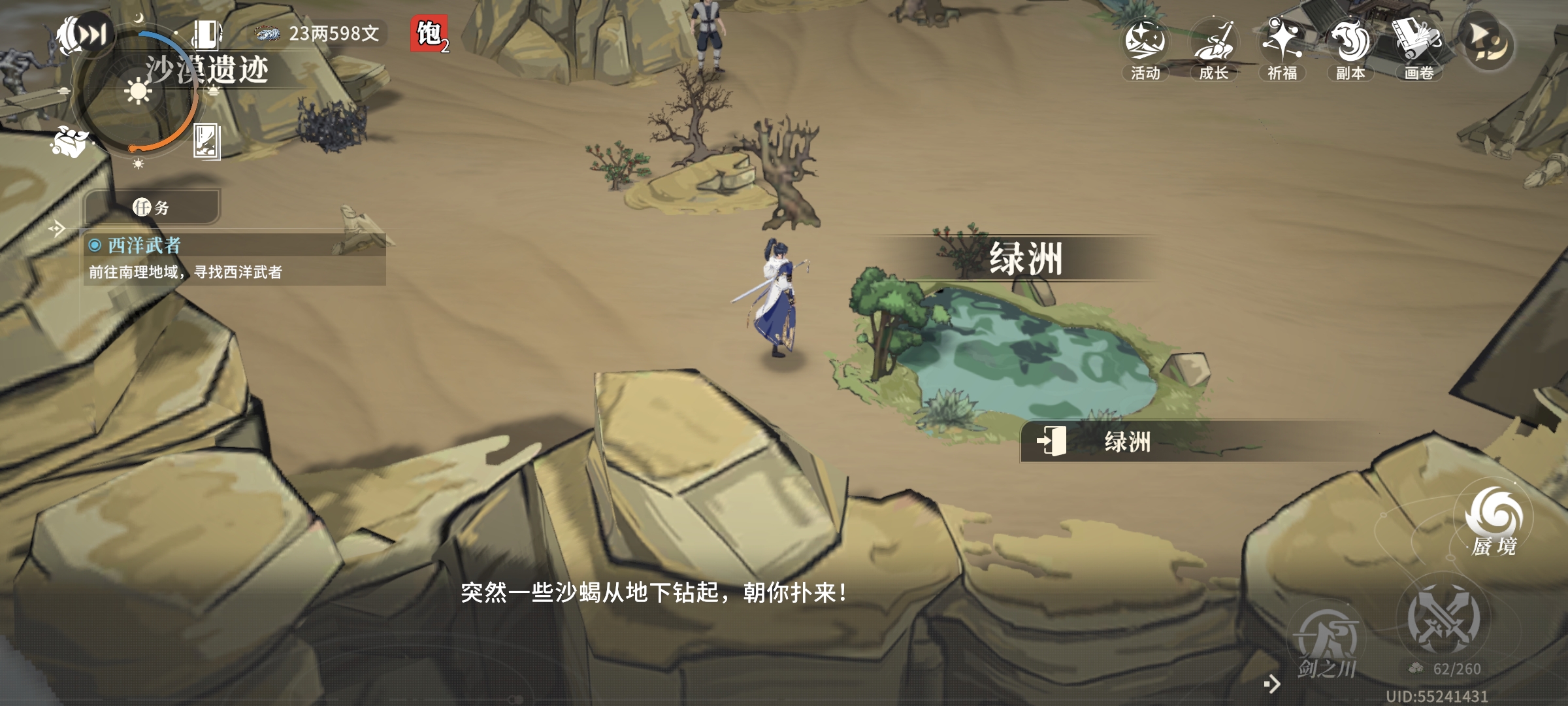 十四、40级和尚支线给了奖励和书信后在去绿洲找疤脸老者,每天打3次沙蝎王可以换奖励,在靠近绿洲的左边站着不动就可以遇怪