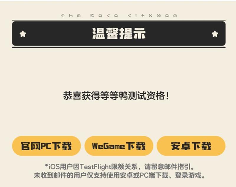 使用【查询到已获取资格的微信号/QQ号】登录,在3月26日,点击首页【资格查询】按钮查询测试资格,获取下载方式。