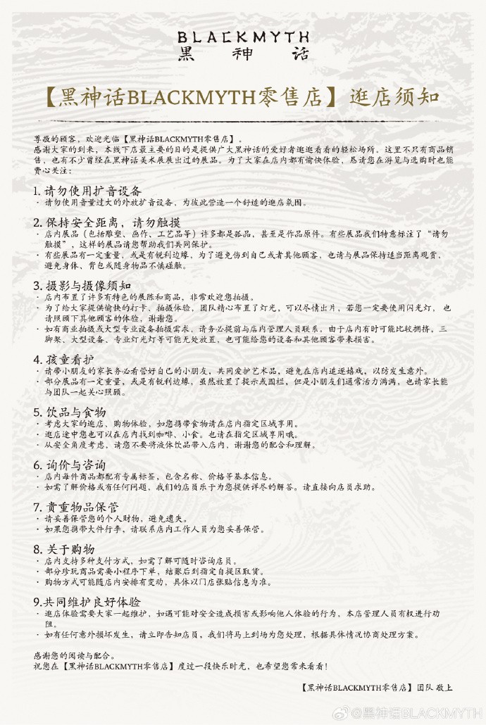 今日,黑神话官方“黑神话BLACKMYTH”在微博发文表示黑神话首家线下零售店于今日开启试运营,并同步上线店铺服务号。