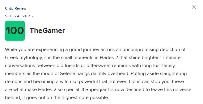 在《哈迪斯2》中,你将经历一场恢宏的旅程,沉浸在毫不妥协的希腊神话描绘中,但真正闪耀的却是那些细微的瞬间。与老友的亲密交谈,或与失散已久的家人苦乐参半的重逢,而这一切都在塞勒涅的月光下轻柔展开。撇开斩杀恶魔与化身为连泰坦都无法阻挡的强大女巫,这些片刻才是《哈迪斯2》的独特之处。若Supergiant注定要告别这一宇宙,那么他们也将以最辉煌的方式谢幕。