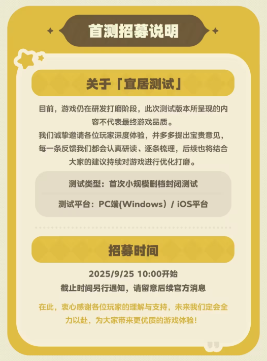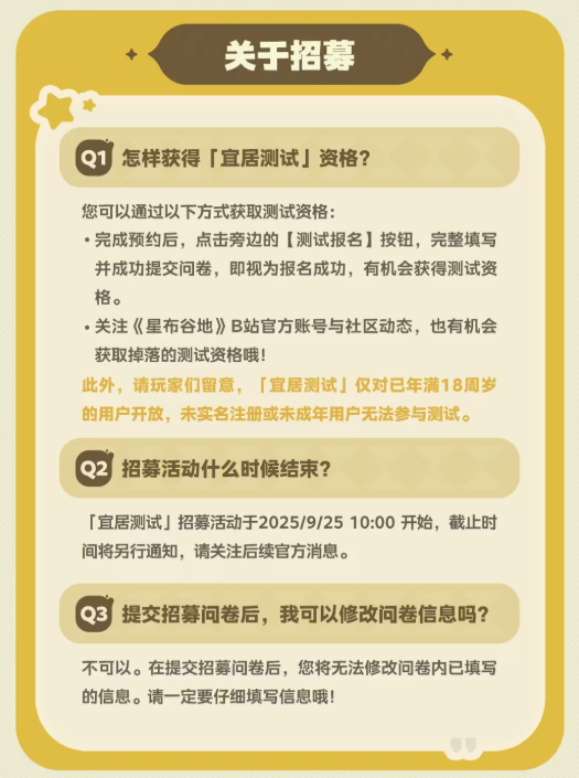 此外,《星布谷地》「宜居测试」资格招募已正式开放。