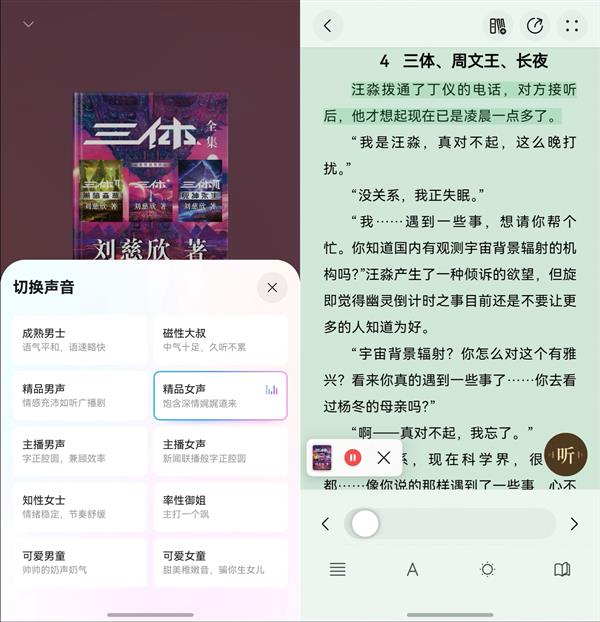 更贴心的是精品音色3.0版本的精品女声,是传媒大学老师的原声制作,声音饱满又有料。哪怕闭着眼睛休息,也会不知不觉就跟着声音跌进故事里,解锁“耳朵追剧”新体验。
