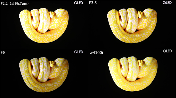当贝 S7 Ultra Max 搭载仿生三阶光圈硬件,开启 F6 光圈后原生对比度可达 8210:1,动态对比度更是飙升至 65000:1。