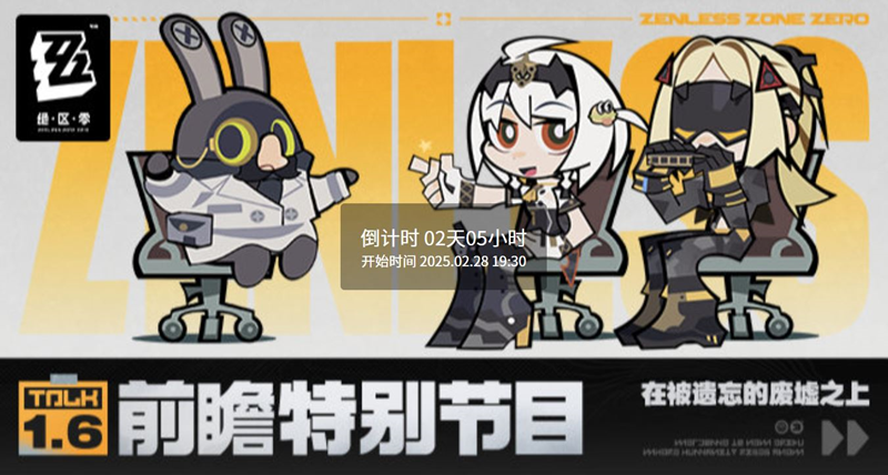 《绝区零》1.6版本「在被遗忘的废墟之上」前瞻特别节目将于2025年2月28日19:30正式开启。