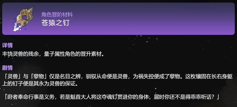 丰饶灵兽的残余,量子属性角色的晋升素材。