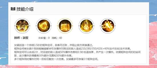 技能描述:新版本的女娲一技能依然保留了击退效果,但中心的伤害从原本的200%降低至150%。技能结束后会在原地生成一个小方块,短暂地困住敌人。