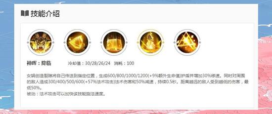 技能描述:女娲的三技能依然是传送,但效果从眩晕改为了减速,同时增加了落地时的伤害和护盾。
