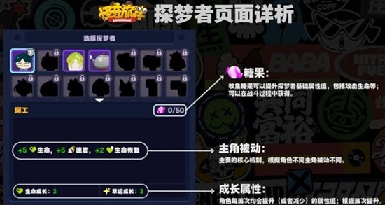 1、袋袋(推荐角色):袋袋是一个非常适合刷分的角色,其特性包括无法移动、无法闪避、没有宝箱,但吸取金币和“心”(回血道具)的范围无限,商品打7折,每回合最大生命值加7,幸运值加3。这些特性使得袋袋在生存能力上非常出色,几乎不需要操作。