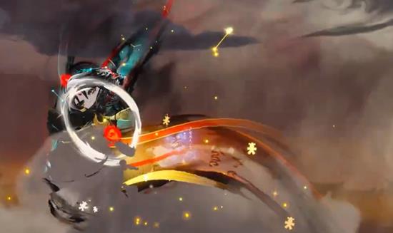 视觉亮点:水墨撰写的星辰法则点缀在破军身后漂浮的红绸上,让他的身影更显独特,成为角色的又一大视觉亮点。