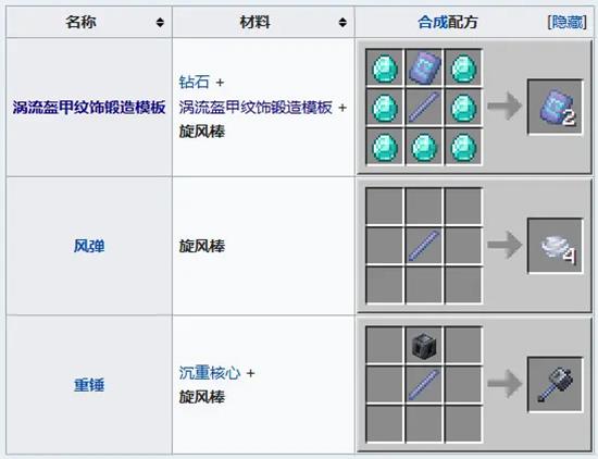 涡流盔甲纹饰锻造模板(Vortex Armor Trim Smithing Template):用于给盔甲添加涡流纹饰。