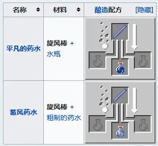 旋风棒还可以作为酿造材料,用于制作某些药水。具体的配方和效果尚未完全确定,但预计会与风系或移动速度相关的药水有关。