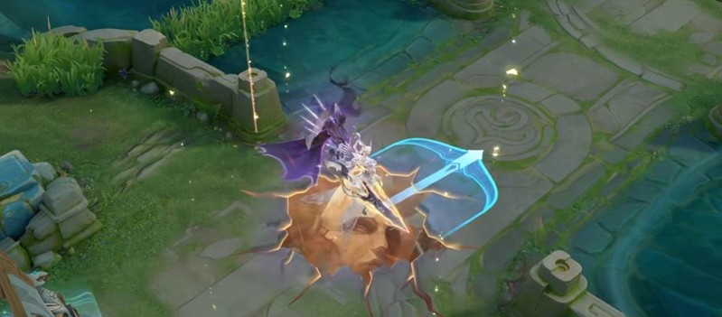 技能特效上,未觉醒状态攻击时召唤多把小剑,形成剑阵效果,体现神性操控的秩序感与距离感。真身觉醒状态攻击方式主要与战神之铠协同作战,强调毁灭与包容并存的神力。
