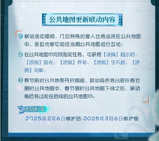 春节限时地图:联动角色将出现在春节限时公共地图中,地图下线后,角色将出现在后续公共地图中。