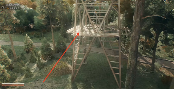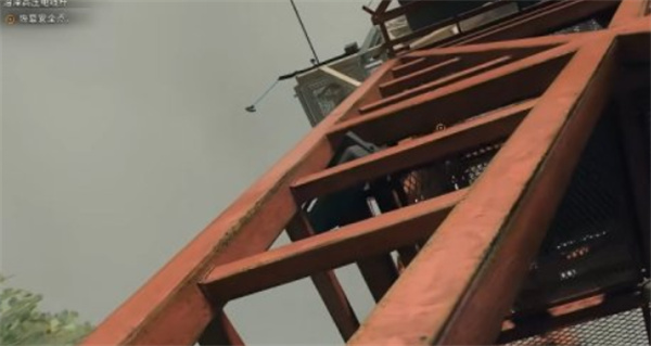 3、到达电线杆平台后,沿着电线杆一路向上攀爬。