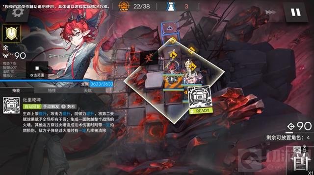 生命上限提升,攻击力提升,防御力提升,将第二天赋效果赋予全场所有干员;生成一面跨越整个战场的火墙,其他友方穿过火墙造成法术伤害时附带一定灼燃损伤,敌方子弹穿过火墙时有一定几率被清除。