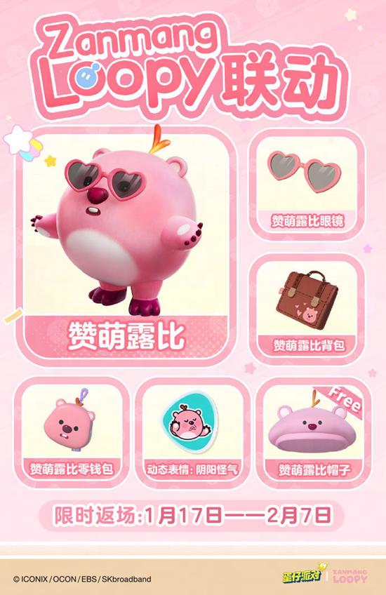 1月17日(周五)至2月7日,《蛋仔派对》与Zanmang Loopy的联动限时返场,顶流女明星赞萌露比将再次空降蛋仔岛。玩家们可以重返蛋仔岛,获取女明星同款潮流搭配,体验全新的游戏内容和乐趣。
