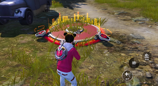终极技能——小型音乐舞台:能够建造小型音乐舞台,提供护盾、自救以及传送功能。第一个技能是加护盾,第二个技能是在10米之内可以自救,第三个技能是传送,在200米内点传送就能来到小区音乐舞台,如果被敌人击倒可以选择传送过来进行自救。