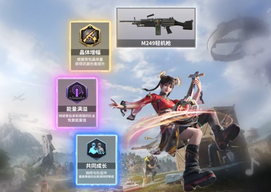 主动技能——共鸣之音:为附近较大范围的队友回复血量或者增加移动速度,只要离队友不超过90米,都能增加自动速度。