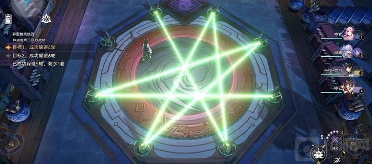 进入挑战后直走,来到1号点位,站在图案的边缘,就能躲避全部的光线了。