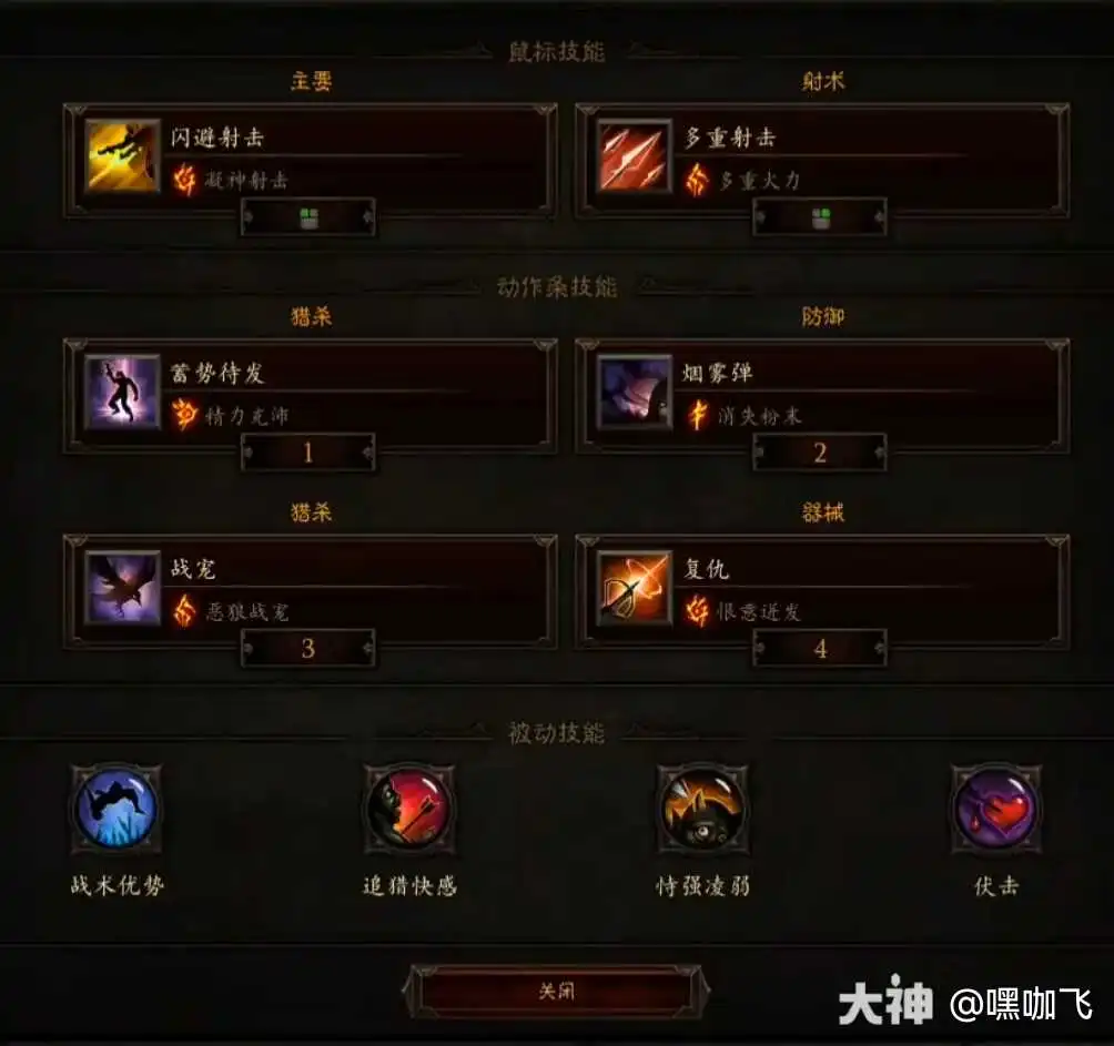 闪避射击选择凝神射击符文,主要用于触发克己守心和明彻裹腕特效。