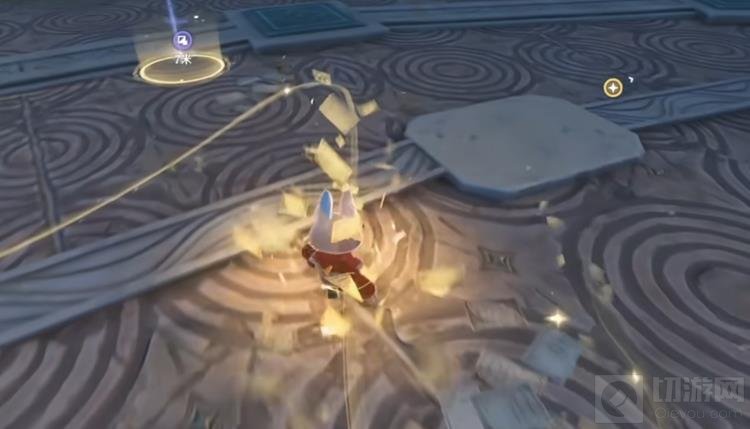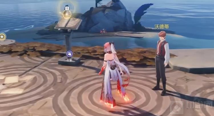 在这里找到一位名叫沃德蒂的NPC,和他进行对话。对话后来到旁边这个跟演讲台一样的装置这里,上面有一个金色的发光球,按一下交互键变成寂寞小姐,开始挑战。
