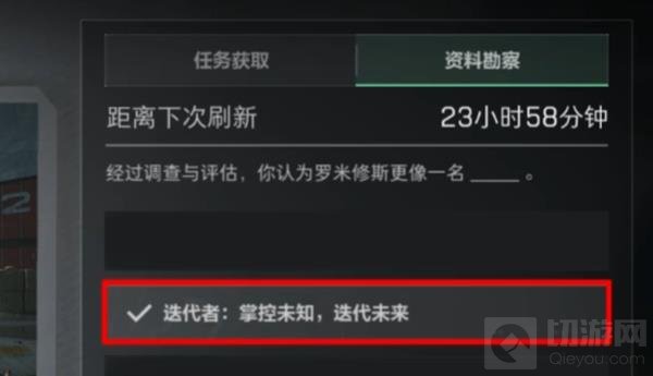 最后,点击右侧的【资料勘察】,根据提出的问题选择正确的答案即可参与。