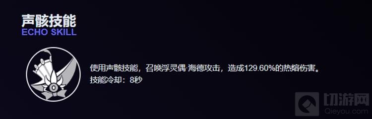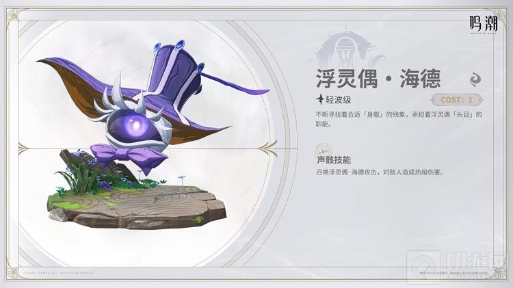 背景描述:浮灵偶·海德是一种神秘的声骸,以其独特的召唤攻击而闻名。它能够对敌人造成热熔伤害,是一种在战场上能够提供强大火力支援的存在。