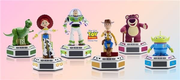 会上展出了一款有IP形象的 Mini Robot迷你机器人,成为当天全场的焦点——与普通盲盒差不多大小的草莓熊公仔,安装在一个机械底座上,按下底座的按键,草莓熊能够挑眉、眨眼、举手打招呼,还能复刻《玩具总动员》中的经典台词;更重要的是,用户可以替换不同角色,如胡迪、巴斯光年等剧中经典角色,同样能说会动。据相关媒体报道,当晚迪士尼当晚为产品背后的研发公司